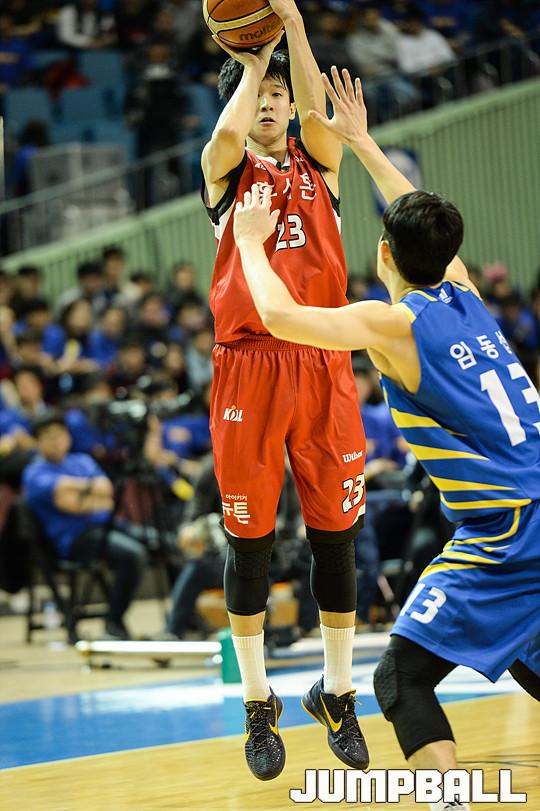 [점프볼=잠실/유용우 기자] 29일 잠실 실내체육관에서 열린 '2015-2016 KCC 프로농구' 서울 삼성과 안양 KGC 인삼공사의 플레이오프 3차경기, KGC 인삼공사 전성현이 3점슛을 성공시키고 있다.