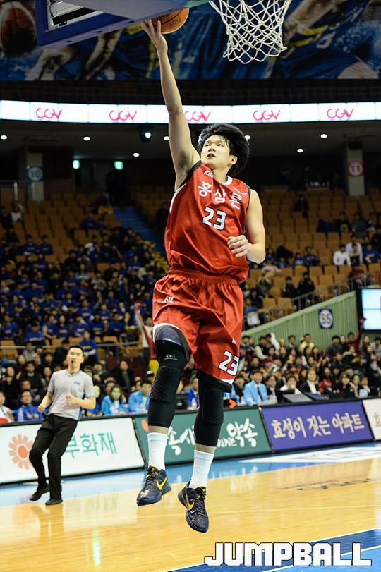 [점프볼=잠실/유용우 기자] 2일 잠실 실내체육관에서 열린 '2015-2016 KCC 프로농구' 서울 삼성과 안양 KGC 인삼공사의 플레이오프 6강 4차전 경기, KGC 전성현이 속공 레이업으로 득점을 성공하고 있다.