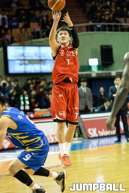 [점프볼=잠실/유용우 기자] 2일 잠실 실내체육관에서 열린 '2015-2016 KCC 프로농구' 서울 삼성과 안양 KGC 인삼공사의 플레이오프 6강 4차전 경기, KGC 박찬희가 중거리슛을 시도하고 있다.