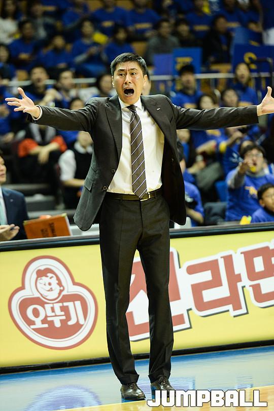 [점프볼=잠실/유용우 기자] 2일 잠실 실내체육관에서 열린 '2015-2016 KCC 프로농구' 서울 삼성과 안양 KGC 인삼공사의 플레이오프 6강 4차전 경기, 삼성 이상민 감독이 파울을 어필하고 있다.