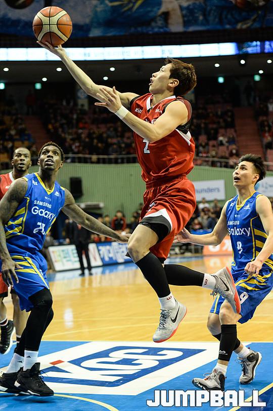 [점프볼=잠실/유용우 기자] 2일 잠실 실내체육관에서 열린 '2015-2016 KCC 프로농구' 서울 삼성과 안양 KGC 인삼공사의 플레이오프 6강 4차전 경기, KGC 김기윤이 레이업을 시도하고 있다.
