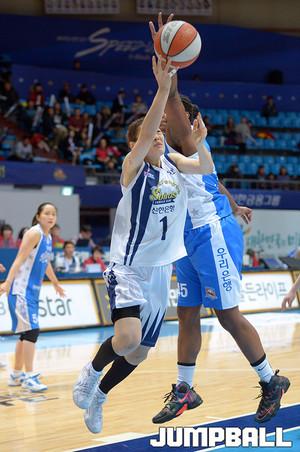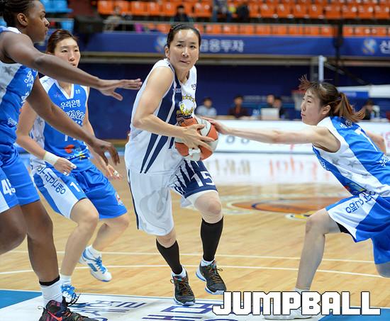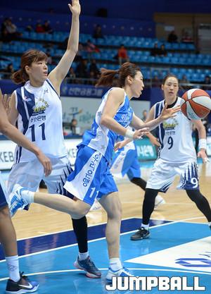 02일 인천 도원체육관에서 열린 'KDB생명 2015-2016 여자프로농구' 인천 신한은행 과 춘천 우리은행 의 경기, 돌파를 시도하는 신한은행 신정자의 공을 우리은행 박혜진이 가로채기를 하고있다.