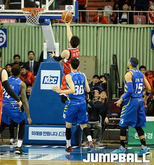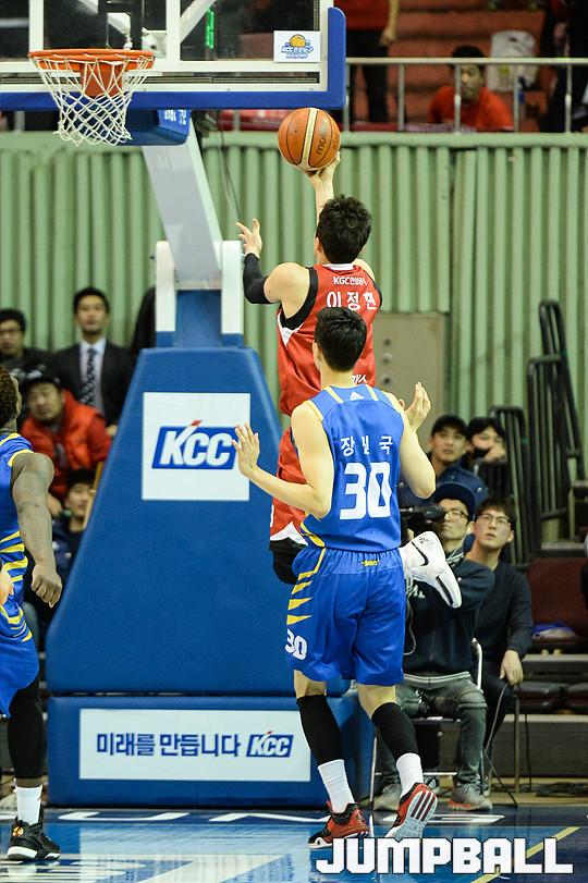 [점프볼=잠실/유용우 기자] 2일 잠실 실내체육관에서 열린 '2015-2016 KCC 프로농구' 서울 삼성과 안양 KGC 인삼공사의 플레이오프 6강 4차전 경기, KGC 이정현이 역전슛을 성공시키고 있다.