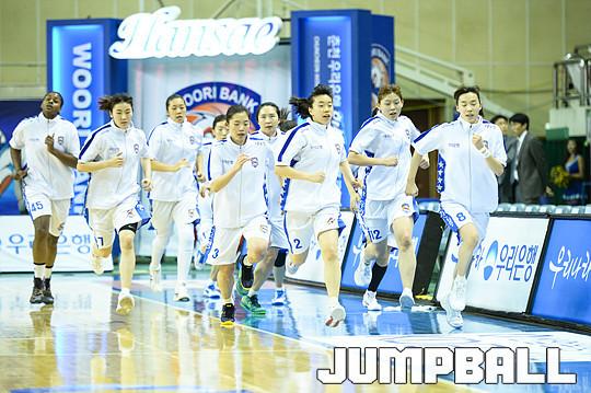 [점프볼=춘천/유용우 기자] 5일 춘천 호반체육관에서 열린 'KDB생명 2015-2016 여자프로농구' 춘천 우리은행과 구리 KDB생명의 경기, 우리은행 선수들이 홈 마지막 경기를 준비하고 있다.