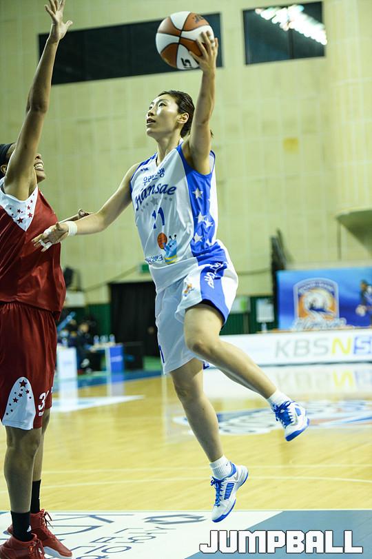 [점프볼=춘천/유용우 기자] 5일 춘천 호반체육관에서 열린 'KDB생명 2015-2016 여자프로농구' 춘천 우리은행과 구리 KDB생명의 경기, 우리은행 임영희가 돌파하며 슛을 시도하고 있다.