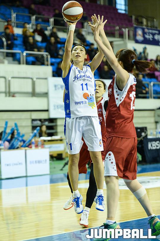 [점프볼=춘천/유용우 기자] 5일 춘천 호반체육관에서 열린 'KDB생명 2015-2016 여자프로농구' 춘천 우리은행과 구리 KDB생명의 경기, 우리은행 임영희가 돌파하며 슛을 시도하고 있다.
