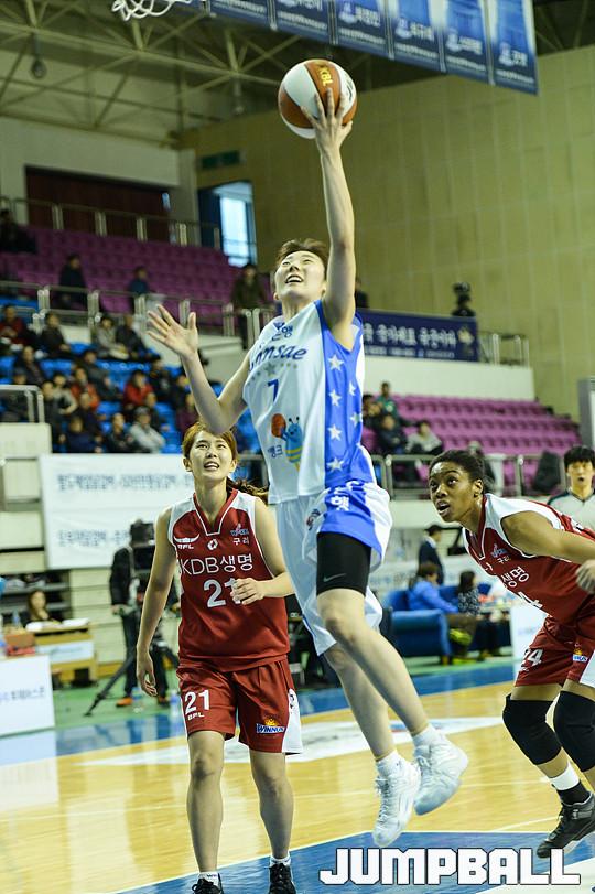 [점프볼=춘천/유용우 기자] 5일 춘천 호반체육관에서 열린 'KDB생명 2015-2016 여자프로농구' 춘천 우리은행과 구리 KDB생명의 경기, 우리은행 박혜진이 레이업을 시도하고 있다.