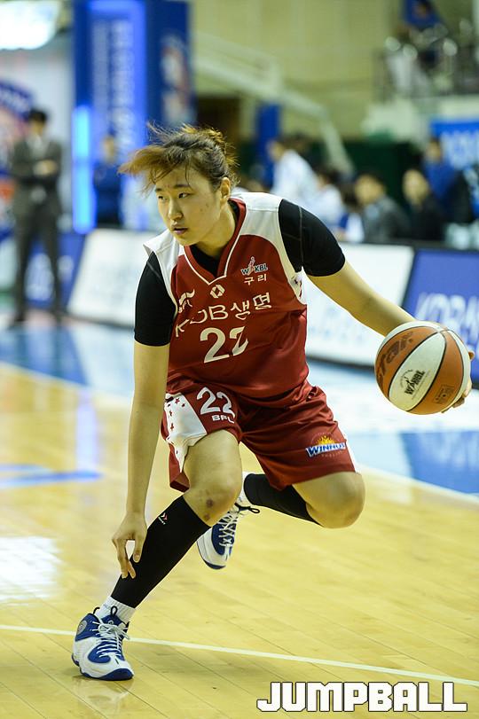 [점프볼=춘천/유용우 기자] 5일 춘천 호반체육관에서 열린 'KDB생명 2015-2016 여자프로농구' 춘천 우리은행과 구리 KDB생명의 경기, KDB생명 구슬이 공격을 진행하고 있다.