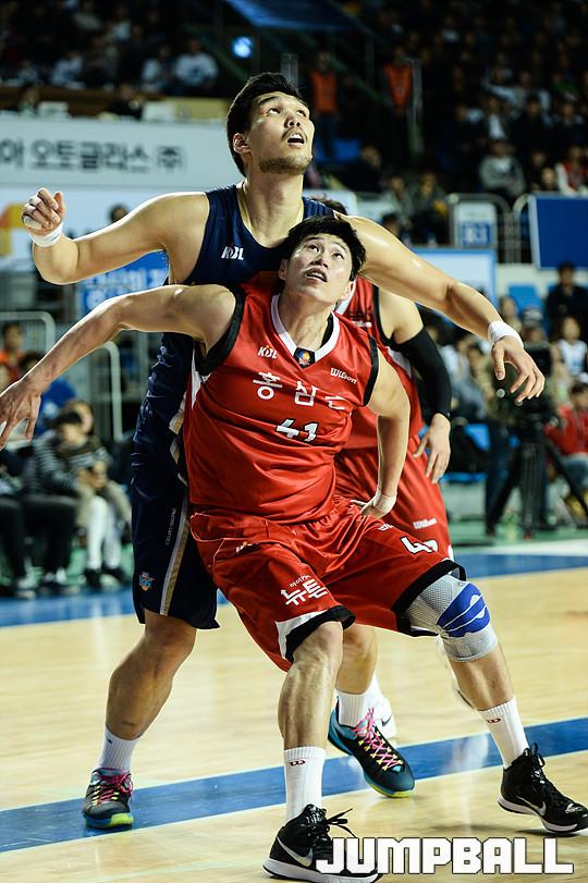 [점프볼=전주/유용우 기자] 9일 전주 실내체육관에서 열린 '2015-2016 KCC 프로농구' 전주 KCC와 안양 KGC 인삼공사의 4강 플레이오프 2차 경기, KGC 오세근이 KCC 하승진과 자리다툼을 벌이고 있다.