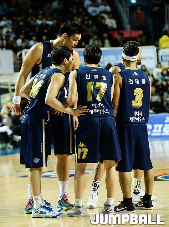 [점프볼=전주/유용우 기자] 9일 전주 실내체육관에서 열린 '2015-2016 KCC 프로농구' 전주 KCC와 안양 KGC 인삼공사의 4강 플레이오프 2차 경기, KCC 하승진과 김태술등 선수들이 작전을 짜고 있다.