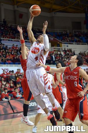 [점프볼=안양/유용우 기자] 11일 안양 실내체육관에서 열린 '2015-2016 KCC 프로농구' 안양 KGC 인삼공사와 전주 KCC의 4강 플레이오프 3차 경기, KCC 하승진이 골밑슛을 시도하고 있다.