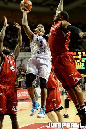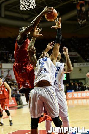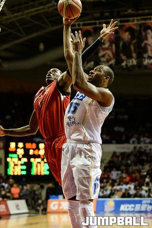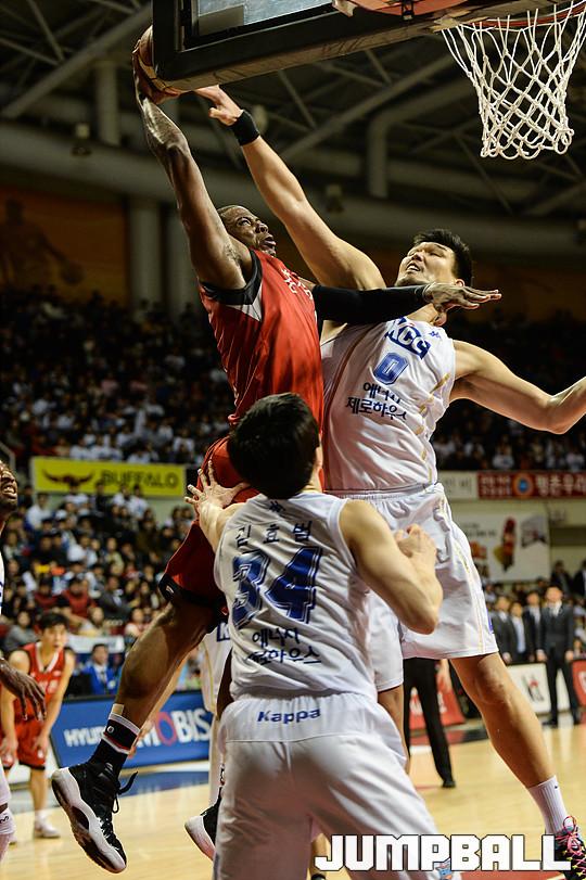 [점프볼=안양/유용우 기자] 11일 안양 실내체육관에서 열린 '2015-2016 KCC 프로농구' 안양 KGC 인삼공사와 전주 KCC의 4강 플레이오프 3차 경기, KGC 로드와 KCC 하승진이 공수대결을 벌이고 있다.