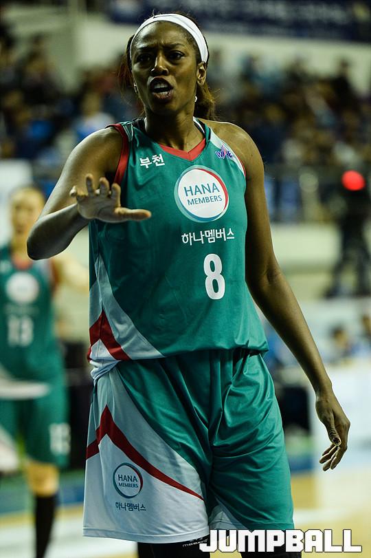 [점프볼=춘천/유용우 기자] 16일 춘천 호반체육관에서 열린 'KDB생명 2015-2016 여자프로농구' 춘천 우리은행과 KEB하나은행의 챔피언결정전 1차전 경기,, KEB하나은행 모스비가 동료들과 플레이에 대해 이야기 하고 있다.