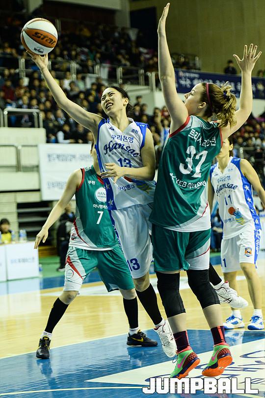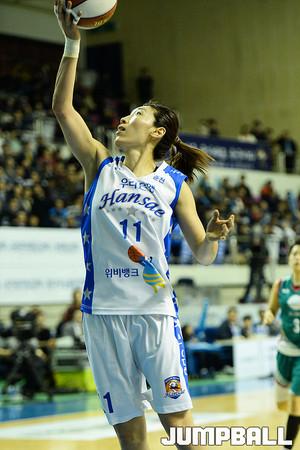 [점프볼=춘천/유용우 기자] 16일 춘천 호반체육관에서 열린 'KDB생명 2015-2016 여자프로농구' 춘천 우리은행과 KEB하나은행의 챔피언결정전 1차전 경기,우리은행 이승아가 수비를 돌파하며 레이업을 시도하고 있다.