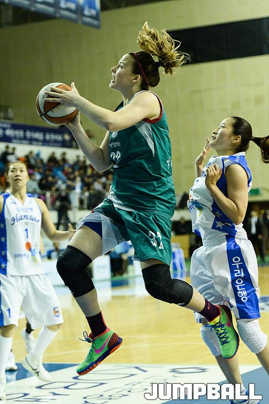 [점프볼=춘천/유용우 기자] 16일 춘천 호반체육관에서 열린 'KDB생명 2015-2016 여자프로농구' 춘천 우리은행과 KEB하나은행의 챔피언결정전 1차전 경기, KEB하나은행 트리샤 리스턴이 돌파하며 공격을 시도하고 있다.