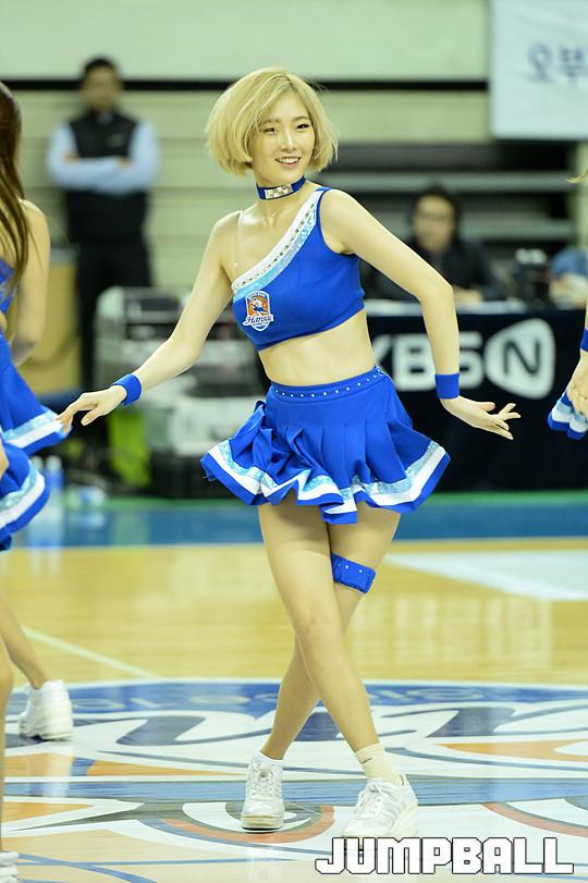 [점프볼=춘천/유용우 기자] 17일 춘천 호반체육관에서 열린 'KDB생명 2015-2016 여자프로농구' 춘천 우리은행과 KEB하나은행의 챔피언결정전 2차전 경기, 우리은행 치어리더들이 하프타임 공연을 펼치고 있다.