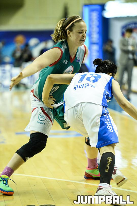 [점프볼=춘천/유용우 기자] 17일 춘천 호반체육관에서 열린 'KDB생명 2015-2016 여자프로농구' 춘천 우리은행과 KEB하나은행의 챔피언결정전 2차전 경기, KEB하나은행 트리샤 리스턴이 압박수비를 펼치고 있다.
