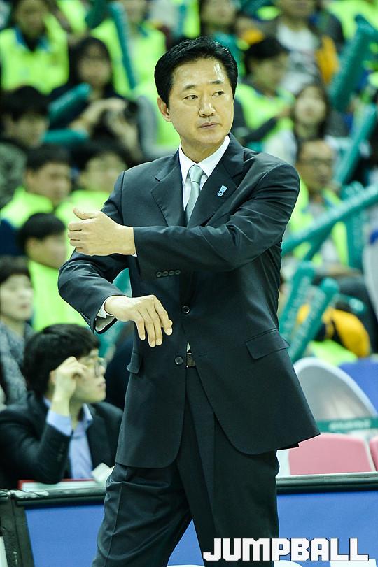 [점프볼=부천/유용우 기자] 20일 부천 실내체육관에서 열린 'KDB생명 2015-2016 여자프로농구' 부천 KEB하나은행과 춘천 우리은행의 챔피언결정전 3차전 경기, KEB하나은행 박종천 감독이 경기를 지켜보고 있다.
