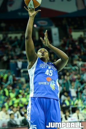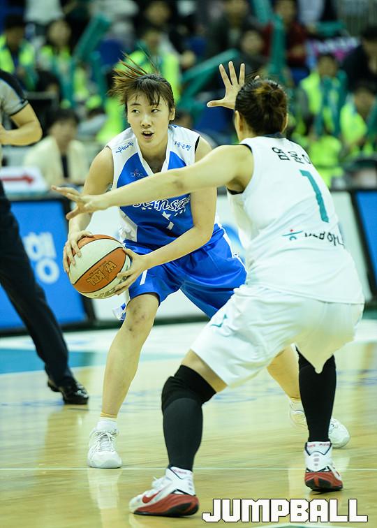 [점프볼=부천/유용우 기자] 20일 부천 실내체육관에서 열린 'KDB생명 2015-2016 여자프로농구' 부천 KEB하나은행과 춘천 우리은행의 챔피언결정전 3차전 경기, 우리은행 박혜진이 패스를 하기위해 공간을 살피고 있다.