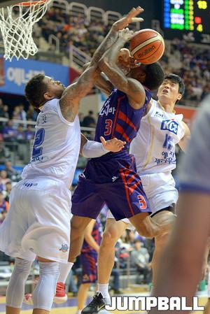 23일 고양 실내체육관에서 열린 '2015-2016 KCC 프로농구' 챔피온 결정전 고양 오리온 과 전주 KCC 의 3차전 경기, 오리온 헤인즈가 kcc 에밋, 전태풍의 수비를 제치고 돌파를 시도하고있다.