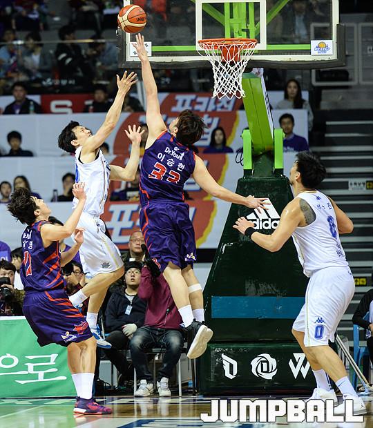 [점프볼=고양/유용우 기자] 25일 고양 실내체육관에서 열린 '2015-2016 KCC 프로농구' 고양 오리온과 전주 KCC의 챔피언결정전 4차전 경기, 오리온 이승현이 KCC 김효범의 슛을 블록하기 위해 점프를 뛰고 있다.