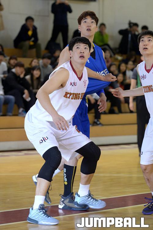 30일 용인 경희대 국제캠퍼스 체육관에서 열린 2016 남녀 대학농구 정규리그 경희대 와 연세대의 경기, 경희대 김철욱이 연세대 박인태에게 스크린 수비를 하고있다.