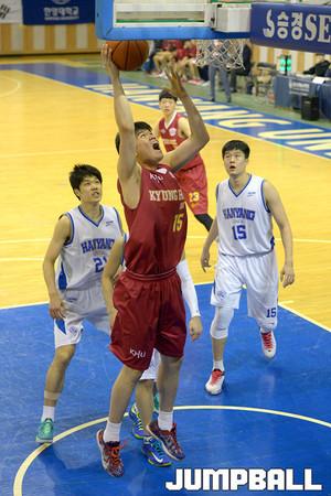[점프볼=용인/유용우 기자] 05일 명지대 용인캠퍼스 체육관에서 열린 '2016 남녀 대학농구리그' 명지대와 중앙대의 경기, 중앙대 박지훈이 레이업을 시도하고 있다.