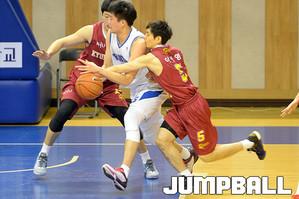 05일 한양대 올림픽 체육관에서 열린 2016 남녀 대학농구 정규리그 한양대 와 경희대의 경기, 경희대 김철욱이 한양대 한중영의 수비를 제치고 팁인으로 골을 성공시키고있다.