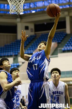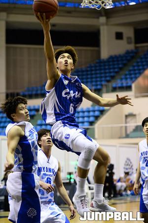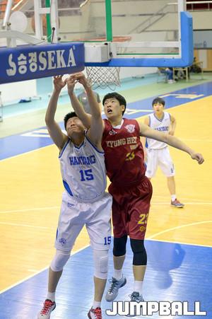 05일 한양대 올림픽 체육관에서 열린 2016 남녀 대학농구 정규리그 한양대 와 경희대의 경기, 양팀 선수들이 골밑에서 박스아웃을 하며 떨어지는 공을 쳐다보고있다.