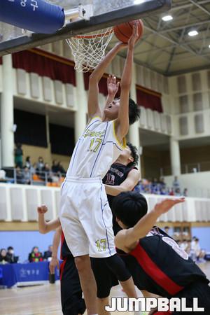 5일 강원도 양구 실내체육관에서 열린 제41회 협회장기 전국남녀중고 농구대회 남고부 준준결승전 군산고와 안양고의 경기, 안양고가 한승희의 제공권 장악에 힘입어 64-58로 군산고의 추격을 따돌리고 승리를 따냈다.