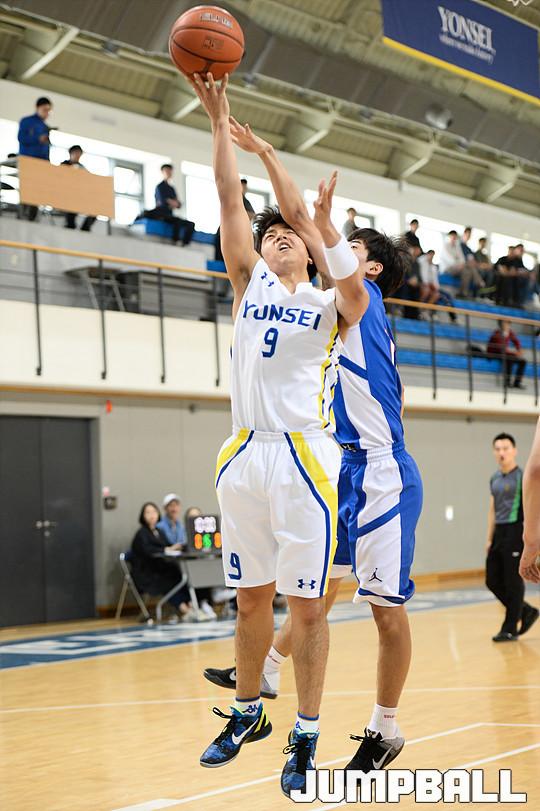 [점프볼=신촌/유용우 기자] 06일 연세대 신촌캠퍼스 체육관에서 열린 '2016 남녀 대학농구리그' 연세대와 조선대의 경기, 연세대 허훈이 수비자의 파울을 이겨내며 레이업을 끝까지 시도하고 있다.