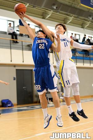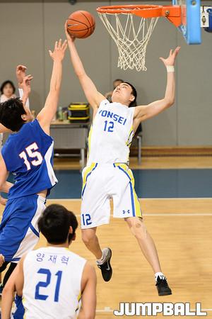 07일 동국대 체육관에서 열린 2016 남녀 대학농구 정규리그 동국대 와 고려대의 경기, 고려대 김승준이 돌파를 시도하다 수비하는 동국대 변준형에게 파울을 당하고있다.