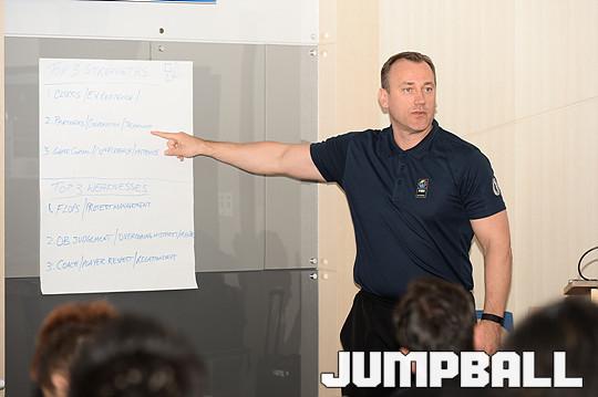 18일 고양 종합경기장 1층 인터뷰실에서 열린 'FIBA 심판 캠프'에서 스티브 세이벨(Steve Seibel, 캐나다) 現FIBA 심판 강사가 강의를 진행하고 있다.