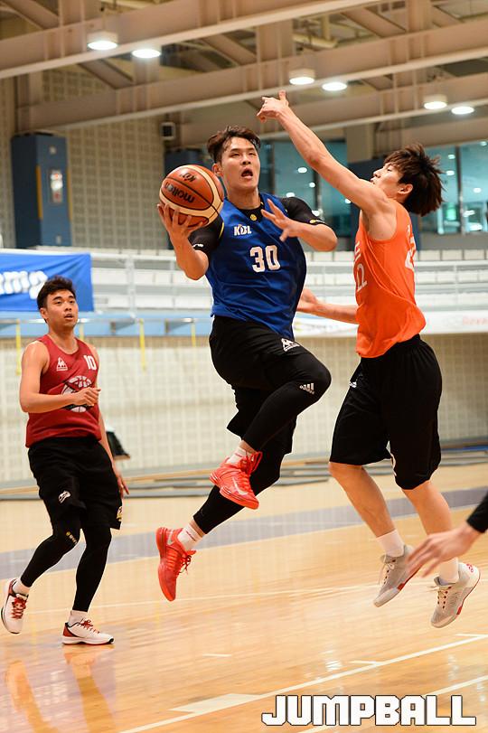 18일 고양 실내보조체육관에서 열린 'FIBA 심판 캠프', 5:5 모의경기에 참가한 LG 안정환이 공격을 시도하고 있다.