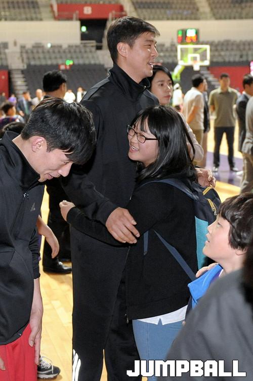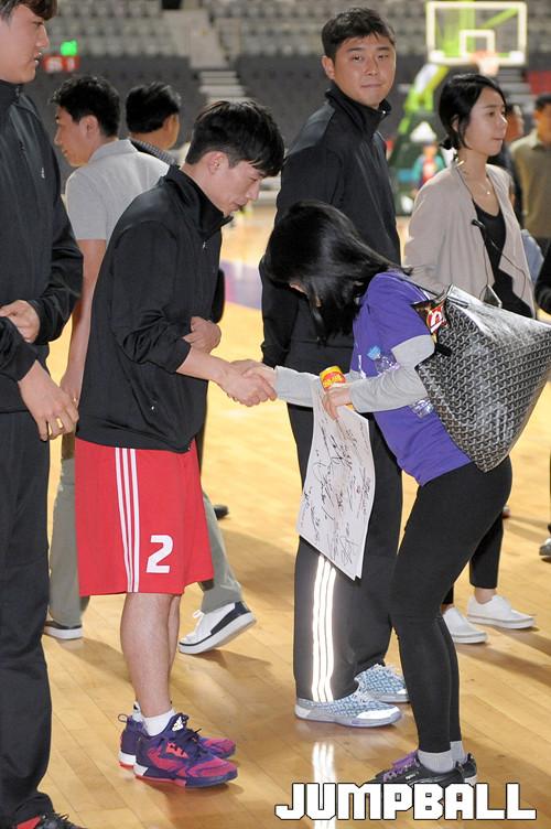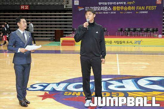 04일 고양 실내체육관 에서 열린 고양오리온스 통합우승축하 FAN FEST, 일정이 마무리되고 선수들은 팬들과 포옹을 하고 사진을 찍으며 작별을 하였다.