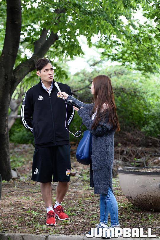 [점프볼=창원/유용우 기자] 창원 LG 선수들이 연고지 창원에 위치한 학교들을 찾아가 농구 일일클리닉을 통해 팬들과 직접 소통하는 ‘농구야 놀자’ 행사가 지난 3일 창원여고에서 진행됐다. 정창영(28, 192cm), 안정환(28, 191cm), 유병훈(26, 190cm)이 LG 선수단을 대표해서 창원여고를 방문했다. 안정환이 미디어 인터뷰에 임하고 있다.