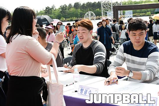 [점프볼=고양/유용우 기자] 14년 만에 우승을 거머쥔 프로농구 고양 오리온 농구단이 성원해준 팬들을 위해 우승 기념 팬 페스티벌을 진행하였다. 어린이날인 5일 고양 오리온 선수들이 연고지 고양에서 진행중인 2016 고양국제꽃박람회내 야외무대에서 팬들을 위한 사인회를 가졌다. 오리온 이승현이 팬들에게 사인을 하고 있다.