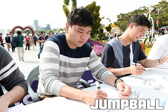 [점프볼=고양/유용우 기자] 14년 만에 우승을 거머쥔 프로농구 고양 오리온 농구단이 성원해준 팬들을 위해 우승 기념 팬 페스티벌을 진행하였다. 어린이날인 5일 고양 오리온 선수들이 연고지 고양에서 진행중인 2016 고양국제꽃박람회내 야외무대에서 팬들을 위한 사인회를 가졌다. 오리온 방경수가 팬사인회에 임하고 있다.