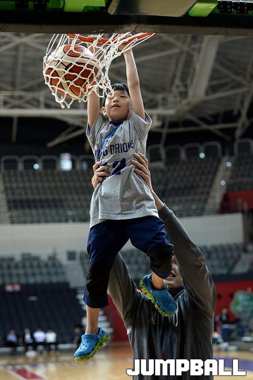 팬들의 소원을 들어주는 시간에서 장재석 선수가 어린이 팬들 번쩍 들어올려 덩크슛의 추억을 만들어주고있다.