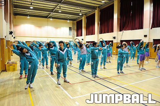 전자랜드와 관교여중 학생들은 서로를 소개한 뒤 곧바로 농구 클리닉을 실시했다. 3학년, 2학년 2반이 참석했고, 선수들이 두 팀으로 나눠 드리블과 패스를 가르쳤다.