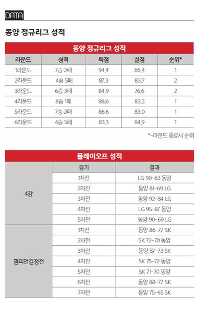 동양 관계자들은 당시에 대해 “김도명, 이지승, 위성우 같은 고참들이 분위기를 잘 만들었다”고 회고했다. 동양은 6차전을 88-77로 잡은데 이어 7차전을 75-65로 마무리했다. 페리맨이 퇴장당하면서 ‘혹시?’하는 불안감을 조성하기도 했지만 4쿼터 김승현과 전희철이 나서서 시리즈를 마무리 지었다. 챔프전 7경기에서 평균 31.3득점 11.0리바운드 4.1블록을 기록했던 힉스는 챔프전 MVP가 됐다. 외국선수가 이 상을 받은 건 힉스가 처음이었다. 김병철은 “농구를 시작한 이후 처음으로 눈물을 흘려봤다”며 우승 소감을 전했고, 김진 감독 역시 “지난 시즌에는 최소한의 자존심까지 바닥에 떨어진 기분이었어요. 참담했죠. 그렇지만 자존심이라도 회복해야겠다는 의지 덕분에 버틴 것 같아요. 모두에게 고맙습니다”라고 말했다.