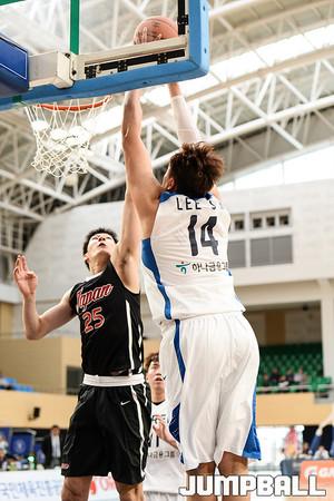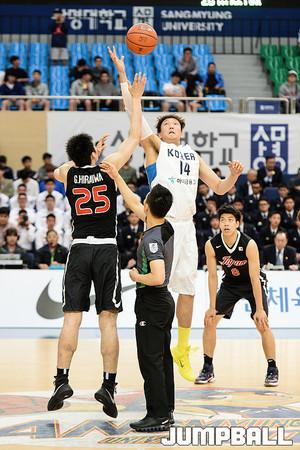 [점프볼=천안/유용우 기자] .13일 천안 상명대학교 체육관에서 '39회 이상백배 한일 대학선발농구대회'가 열렸다. 13-15일까지 3차전을 치루어 승자를 가르게 된다.대학 최고의 선수인 이종현, 강상재(이상 고려대), 최준용, 허훈(연세대) 등 대학농구 스타들이 한 팀이 돼 호흡을 맞춘다. 최준용이 골밑을 파고 들며 공격을 시도하고 있다.
