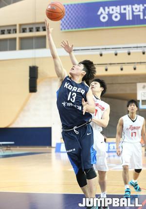 15일 천안 상명대학교 체육관에서 열린 제 39회 이상백배 한일 대학선발농구대회, 1, 2차전 승리를 거두며 우승을 확정지은 한국 대학선발팀이 일본을 상대로 3차전을 치렀다. 한국 대학선발팀 최준용이 일본 수비수 두명 사이로 노룩 패스를 해주고있다.
