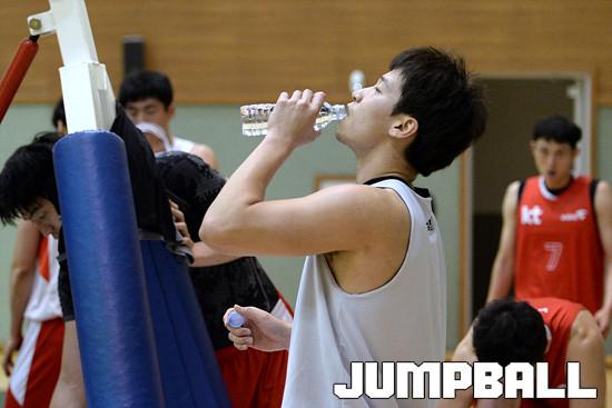 19일 부산 KT 의 비시즌 훈련현장을 찾았다. 조동현 감독의 지휘아래 KT 선수들은 기초체력훈련과 수비훈련등을 하고있었다. 재계약한 김우람도 구슬땀을 흘리며 훈련을 하고있다. 김우람이 훈련 중에 물을 마시고있다.