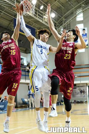 [점프볼=신촌/유용우 기자] 24일 연세대체육관에서 열린 '2016 남녀 대학농구 정규리그' 연세대와 경희대의 경기, 연세대 김진용이 라인업하며 리바운드를 준비하고 있다.
