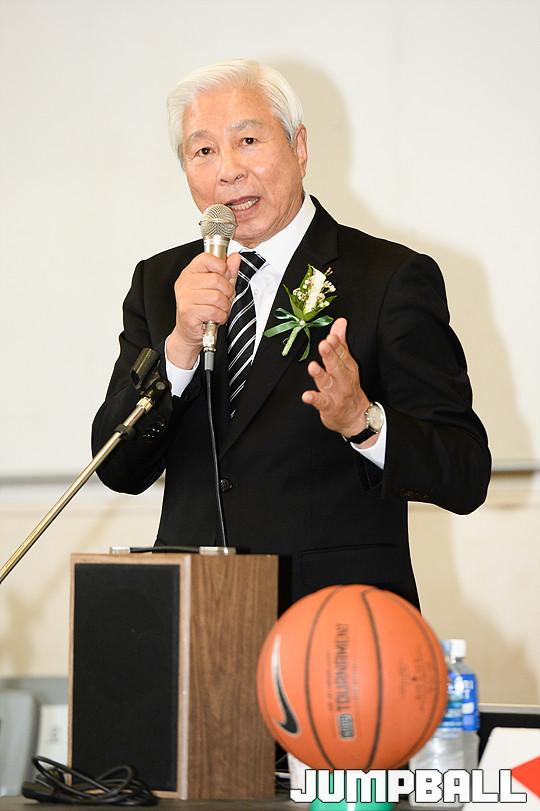 28일 숙명여고 체육관에서 열린 '제36회 전국어머니농구대회' 개회식, 방열 대한농구협회 회장이 대회사를 하고 있다.