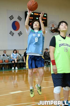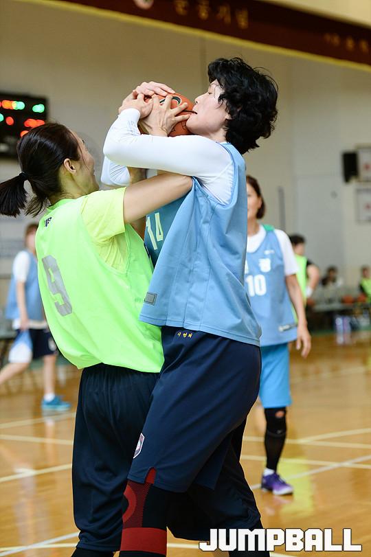 28일 숙명여고 체육관에서 열린 '제36회 전국어머니농구대회' 대전과 신광의 경기, 신광 이명희가 리바운드 다툼을 벌이고 있다.