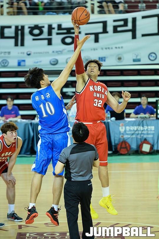 [점프볼=안암/유용우 기자] 31일 고려대 화정체육관에서 열린 '2016 남녀 대학농구 정규리그' 고려대와 동국대의 경기, 고려대 이종현이 점프볼로 공격권을 가져가고 있다.