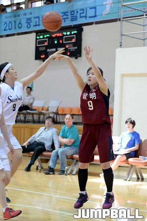 05일 양정고 체육관에서 열린 선일여고 과 숙명여고 의 경기, 선일여고 서나은이 숙명여고 김효진의 공을 스틸하고있다.