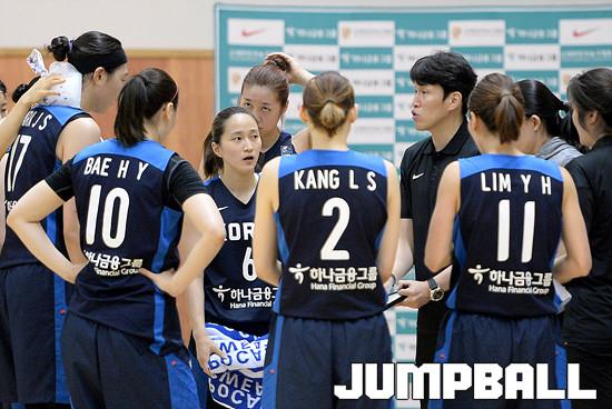 천안 쌍용고와의 연습게임에서 위성우 감독이 선수들에게 작전을 지시하고있다.